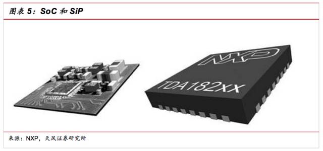 SoC與SIP是極為相似,兩者均將一個包含邏輯組件、內(nèi)存組件,甚至包含被動組件的系統(tǒng),整合在一個單位中。SoC是從設(shè)計的角度出發(fā),是將系統(tǒng)所需的組件高度集成到一塊芯片上。SiP是從封裝的立場出發(fā),對不同芯片進(jìn)行并排或疊加的封裝方式,將多個具有不同功能的有源電子元件與可選無源器件,以及諸如MEMS或者光學(xué)器件等其他器件優(yōu)先組裝到一起,實現(xiàn)一定功能的單個標(biāo)準(zhǔn)封裝件。