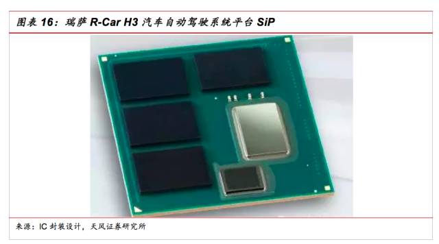 汽車電子是SiP的重要應(yīng)用場景。汽車電子里的SiP應(yīng)用正在逐漸增加。以發(fā)動機控制單元(ECU)舉例,ECU由微處理器(CPU)、存儲器(ROM、RAM)、輸入/輸出接口(I/O)、模數(shù)轉(zhuǎn)換器(A/D)以及整形、驅(qū)動等大規(guī)模集成電路組成。各類型的芯片之間工藝不同,目前較多采用SiP的方式將芯片整合在一起成為完整的控制系統(tǒng)。另外,汽車防抱死系統(tǒng)(ABS)、燃油噴射控制系統(tǒng)、安全氣囊電子系統(tǒng)、方向盤控制系統(tǒng)、輪胎低氣壓報警系統(tǒng)等各個單元,采用SiP的形式也在不斷增多。此外,SIP技術(shù)在快速增長的車載辦公系統(tǒng)和娛樂系統(tǒng)中也獲得了成功的應(yīng)用。