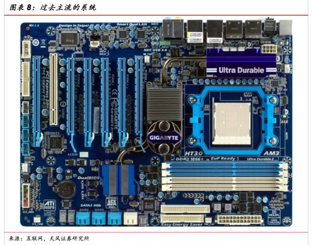 PCB板并不遵從摩爾定律,是整個系統(tǒng)性能提升的瓶頸。與芯片規(guī)模不斷縮小相對應(yīng)的是,PCB板這些年并沒有發(fā)生太大變化。舉例而言,PCB主板的標(biāo)準(zhǔn)最小線寬從十年前就是3 mil(大約75 um),到今天還是3 mil,幾乎沒有進(jìn)步。畢竟,PCB并不遵從摩爾定律。因為PCB的限制,使得整個系統(tǒng)的性能提升遇到了瓶頸。比如,由于PCB線寬都沒變化,所以處理器和內(nèi)存之間的連線密度也保持不變。換句話說,在處理器和內(nèi)存封裝大小不大變的情況下,處理器和內(nèi)存之間的連線數(shù)量不會顯著變化。而內(nèi)存的帶寬等于內(nèi)存接口位寬 乘以內(nèi)存接口操作頻率。內(nèi)存輸出位寬等于處理器和內(nèi)存之間的連線數(shù)量,在十年間受到PCB板工藝的限制一直是64bit沒有發(fā)生變化。所以想提升內(nèi)存帶寬只有提高內(nèi)存接口操作頻率。這就限制了整個系統(tǒng)的性能提升。
