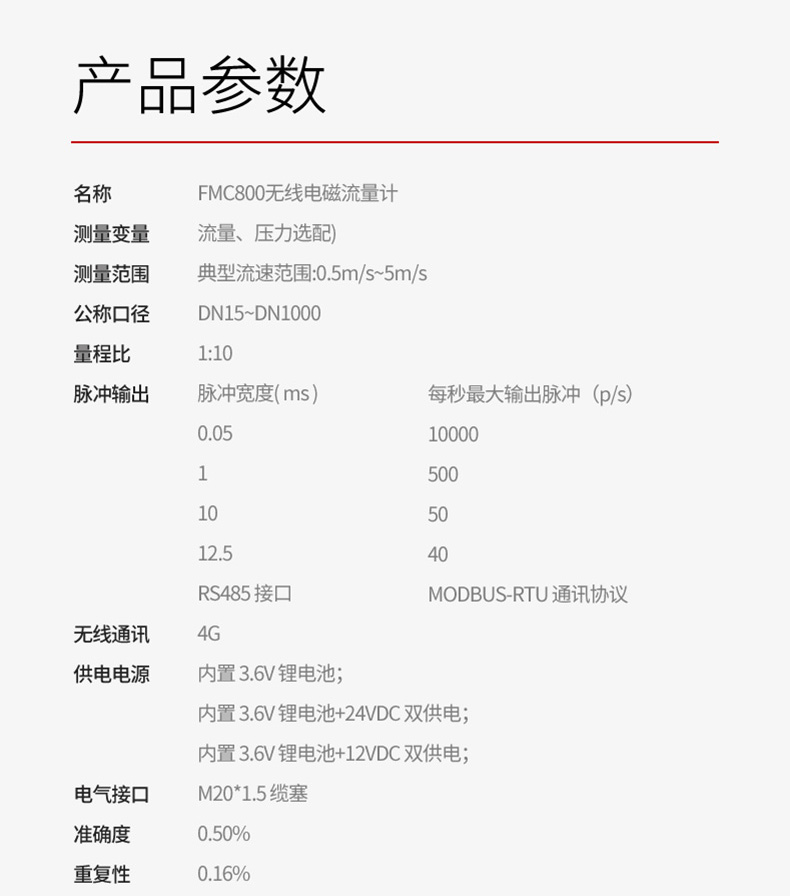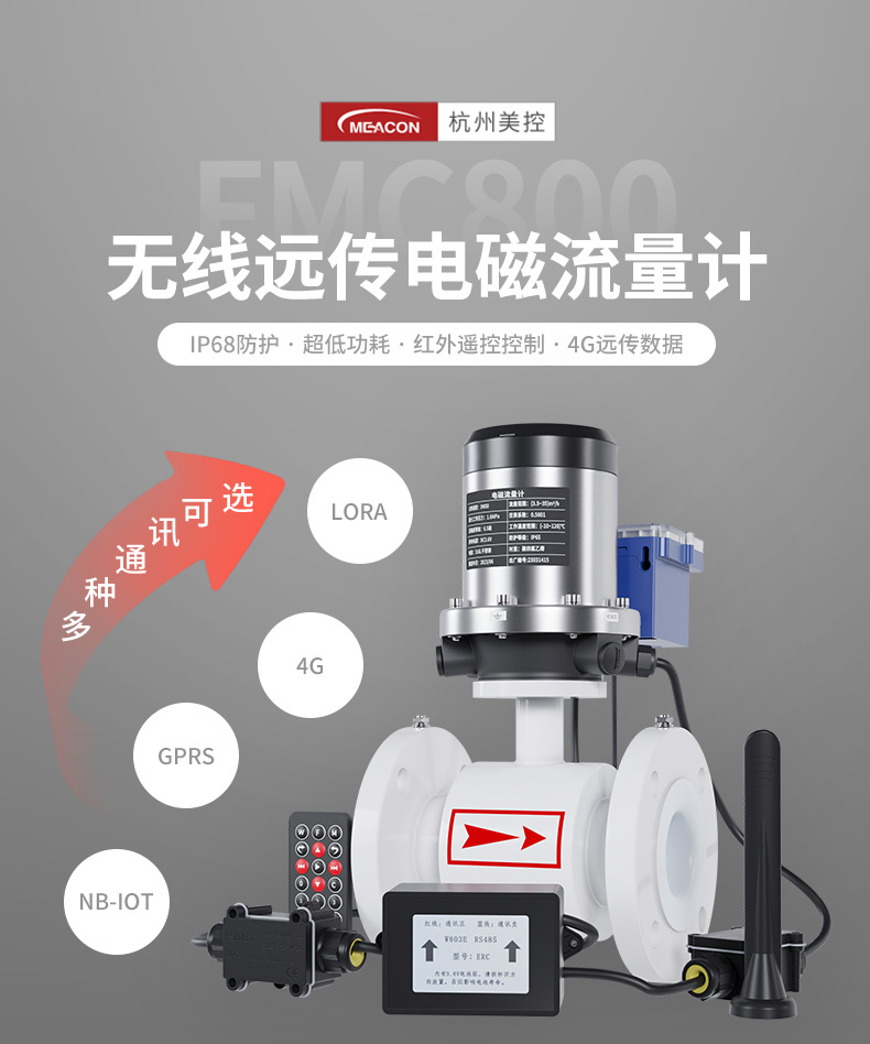 美控_FMC800無線電磁流量計由電磁流量計和 4G 無線遠(yuǎn)傳模塊共同組成,用于測量封閉管道內(nèi)導(dǎo)電液體的瞬時流量和累積流量。測量數(shù)據(jù)通過 4G 信號遠(yuǎn)傳至網(wǎng)絡(luò)接收平臺,用戶可以通過瀏覽器、微信公眾號等方式靈活方便地查看數(shù)據(jù)、遠(yuǎn)程配置參數(shù)等功能,實現(xiàn)智能物聯(lián)。廣泛應(yīng)用于自來水、化工、煤炭、環(huán)保、輕紡、冶金、造紙等行業(yè)。