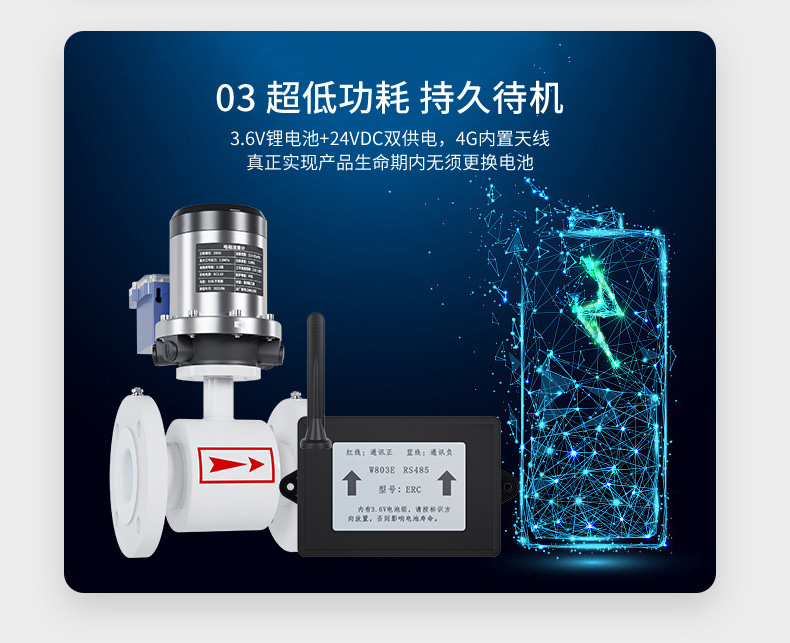 流量轉(zhuǎn)換器為電池供電型轉(zhuǎn)換器,標(biāo)配一個常規(guī)鋰電池組,可持續(xù)工作 3~6 年。若配用高容量鋰電池組,工作時間會更長。
