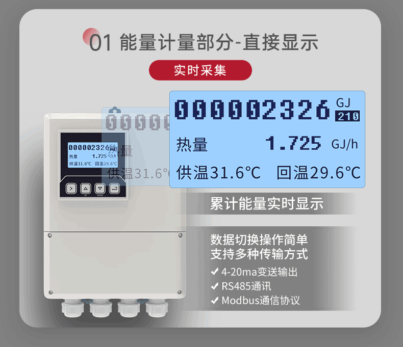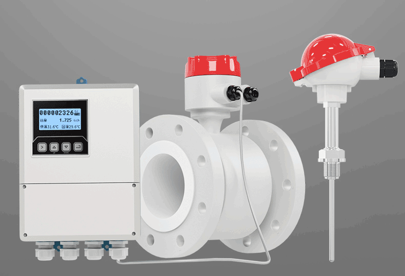 電磁熱量表主要是對(duì)熱交換系統(tǒng)中載能介質(zhì)(液體水)的供水溫度、回水溫度及瞬時(shí)流量進(jìn)行實(shí)時(shí)測(cè)量,并按照熱力學(xué)能量計(jì)算公式,對(duì)系統(tǒng)消耗的冷量或熱量值進(jìn)行計(jì)算并保存的裝置。其中電磁式流量傳感器是通過法拉第電磁感應(yīng)定律,將瞬時(shí)流量信號(hào)線性的變化為感應(yīng)電動(dòng)勢(shì)這一電信號(hào),從而得到瞬時(shí)流量信號(hào)。計(jì)算器將流量信號(hào)與溫度傳感器采集的溫度信號(hào)進(jìn)行積算,得出我們需要的能量值。