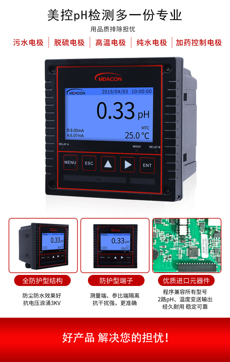 本產(chǎn)品是在線pH/orp控制器廣泛應(yīng)用于火電、化工化肥、冶金、環(huán)保、制藥、生化、食品和自來水等溶液中PH值或ORP值的連續(xù)監(jiān)測。