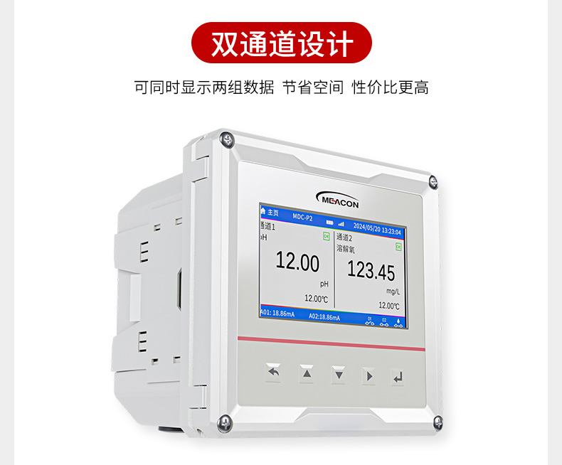 MDC-P1/P2是一款先進(jìn)的智能在線多參數(shù)控制器,最多可支持 2 路,其第 1 通道的混合模式功能允許連接模擬或數(shù)字傳感器,第 2 通道連接數(shù)字傳感器,該控制器可測量 pH、ORP、電導(dǎo)率、溶解氧、濁度、污泥濃度、余氯、氨氮、硝氮、COD 等多種參數(shù)。其連續(xù)監(jiān)測的數(shù)據(jù)通過變送輸出連接 DCS 系統(tǒng)或通過 RS485 接口用 Modbus-RTU 協(xié)議與計(jì)算機(jī)通訊,實(shí)現(xiàn)遠(yuǎn)傳監(jiān)控與記錄,也可以控制清洗系統(tǒng)或泵??刂破骺蛇x配NB-IoT 無線傳輸模塊,通過安裝儀表堂堂 APP,用戶可在移動(dòng)端了解現(xiàn)場情況。該控制器廣泛應(yīng)用于火電、化工化肥、冶金、環(huán)保、制藥、生化、食品、污水、半導(dǎo)體和自來水等各個(gè)行業(yè)。