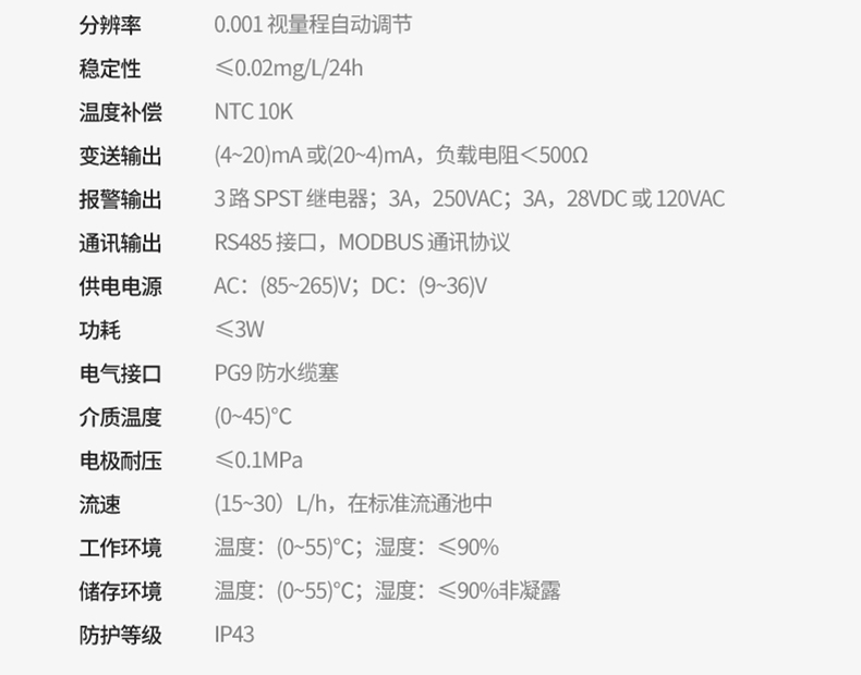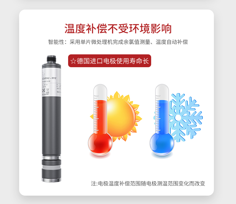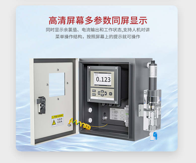 本余氯儀標(biāo)配德國(guó)原裝進(jìn)口 RG 余氯電極,對(duì)水溶液中的的余氯濃度進(jìn)行連續(xù)監(jiān)測(cè)和控制。儀表具有電流輸出、測(cè)量范圍自由設(shè)定、高低超限報(bào)警提示和三組繼電器控制開(kāi)關(guān)、遲滯量范圍可調(diào)、自動(dòng)溫度補(bǔ)等功能。廣泛用于自來(lái)水、工業(yè)污水、廢水處理、海水處理、游泳池、管網(wǎng)末端余氯監(jiān)測(cè)。