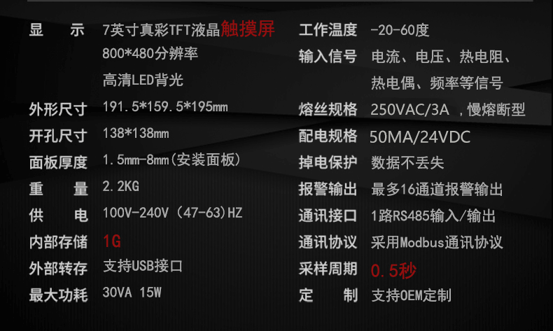 本產(chǎn)品為工業(yè)無紙記錄儀,配置 3.5 英寸 TFT 真彩全視角液晶顯示屏。