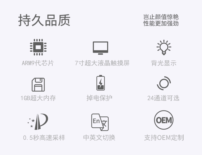 本產(chǎn)品為彩屏無紙記錄儀采用高速、高性能32位ARM處理器和5.6英寸LED背光的320*240點陣式液晶顯示屏。