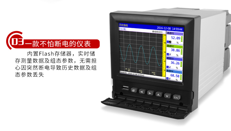 掉電保護(hù):所有數(shù)據(jù)保存在FLASH存儲(chǔ)器中,無(wú)需后備電池,確保所有歷史數(shù)據(jù)及組態(tài)參數(shù)不會(huì)因掉電而丟失