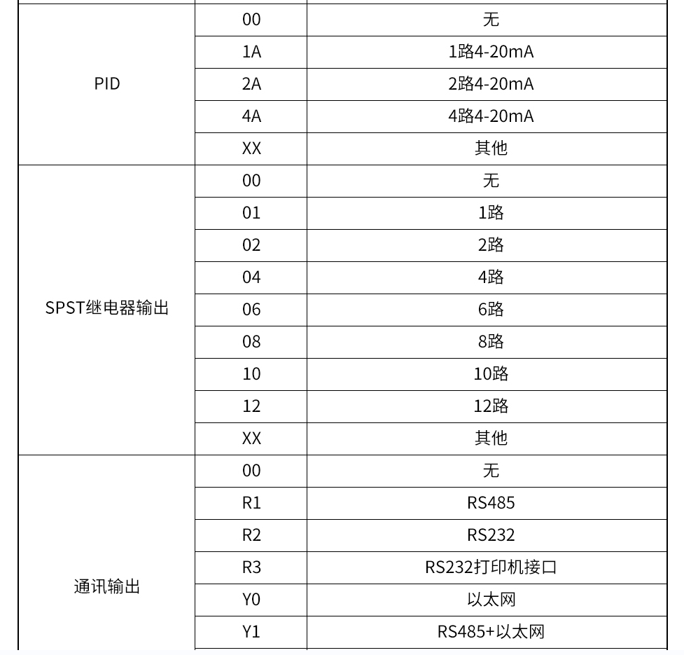 模擬量輸出:4-20mA(選配)