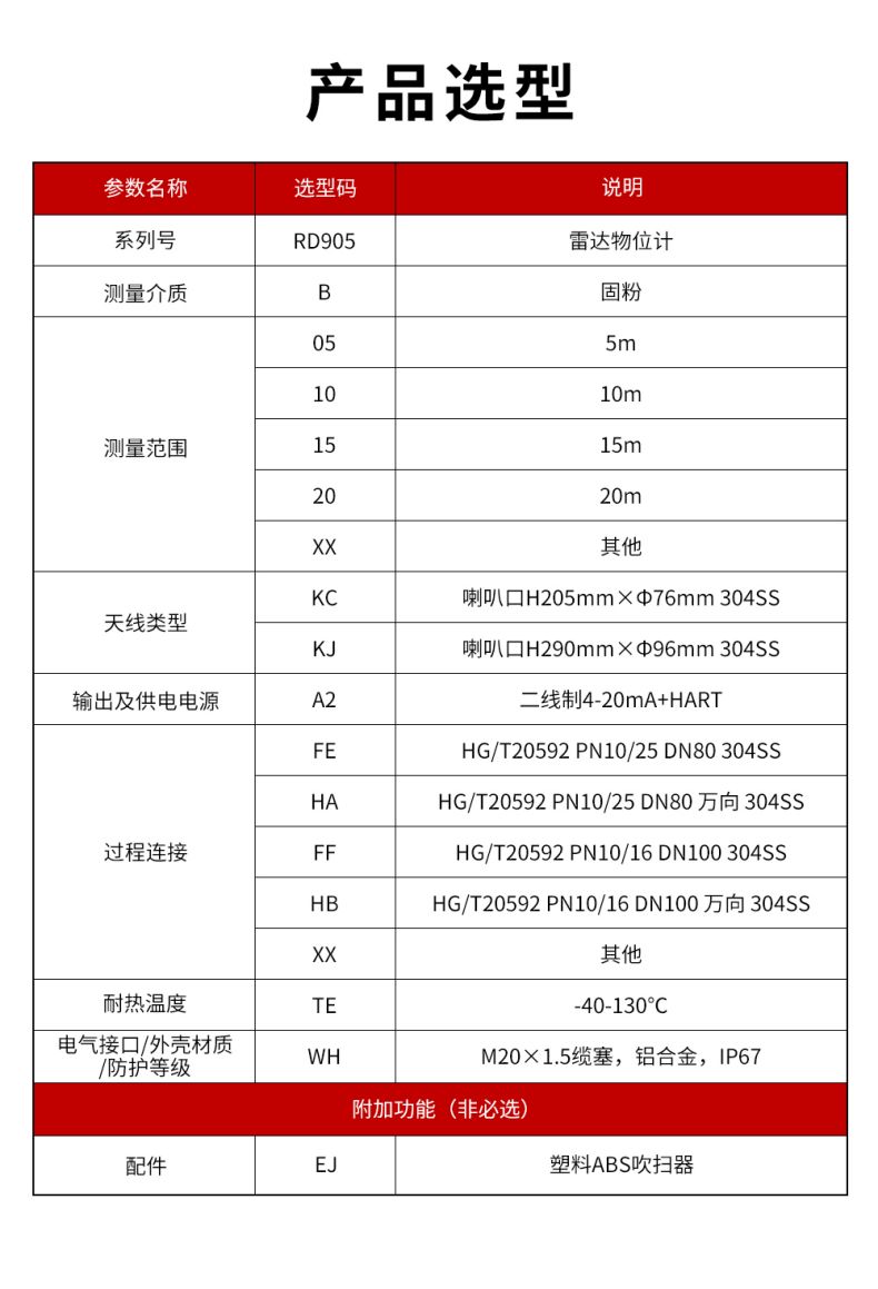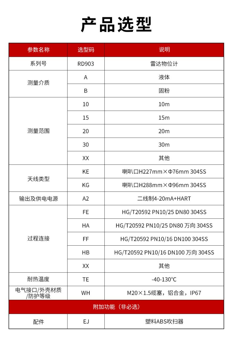 26GHz信號輸出:4...20mA/HART(兩線/四線) RS485/Mod bus