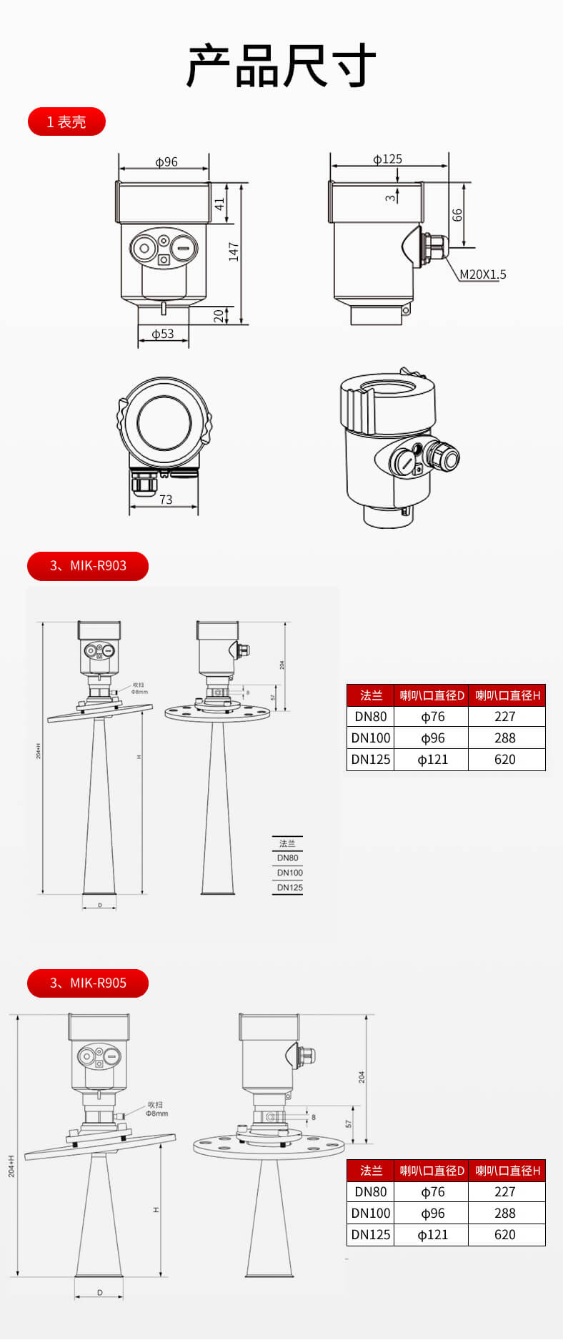 MIK-RD908/909雷達液位計天線發(fā)射極窄的微波脈沖