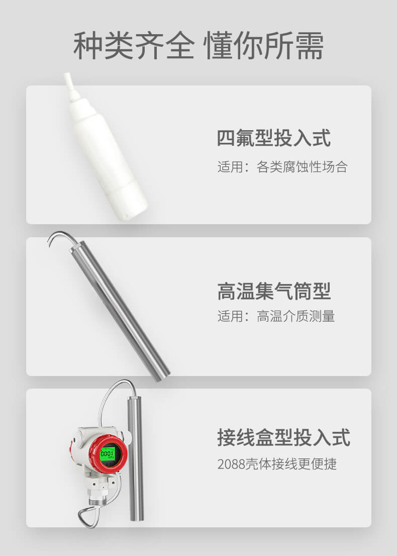 投入式液位變送器由高性能擴散硅壓阻式壓力傳感器作為測量元件...